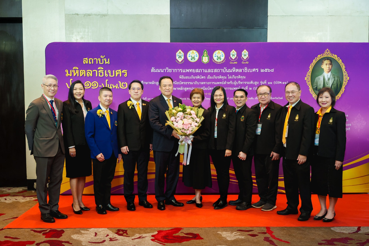 เมื่อวันที่ 19 ตุลาคม 2568 สถาบันมหิตลาธิเบศร มูลนิธิธรรมาภิบาลทางการแพทย์ และ แพทยสภา ได้ร่วมกันจัดงานสัมมนาวิชาการ ฯ ปธพ.11 และ ปนพ.2 โดยมี ศาสตราจารย์เกียรติคุณ นายแพทย์เกษม วัฒนชัย องคมนตรี เป็นประธาน มอบ “โล่เกียรติยศ ปธพ.” และ มอบเกียรติบัตรให้กับนักศึกษาทั้ง 2 รุ่น และ ปาฐกถาพิเศษ จากนายอนุทิน ชาญวีรกูล นายกรัฐมนตรี ในบรรยากาศที่เต็มเปี่ยมไปด้วยความภาคภูมิใจ ใน ปธพ.และ ปนพ.