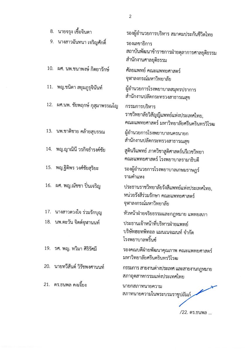 เรื่อง รายชื่อผู้ได้รับคัดเลือกเข้าศึกษาอบรมหลักสูตรประกาศนียบัตรกฎหมายทางการแพทย์ รุ่นที่ 2 (ปกพ.2)
