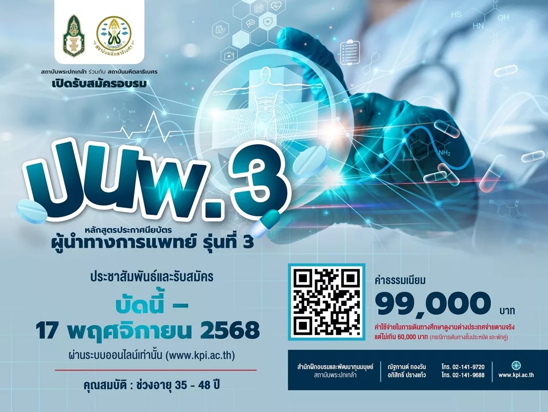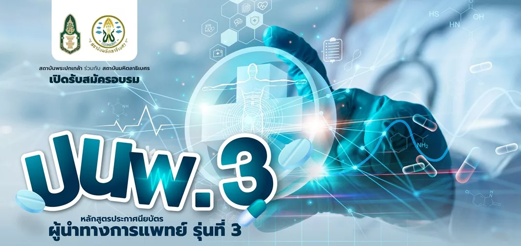 เปิดรับสมัครผู้สนใจเข้ารับการศึกษาอบรม หลักสูตรประกาศนียบัตรผู้นำทางการแพทย์ รุ่นที่ 3 (ปนพ.3)