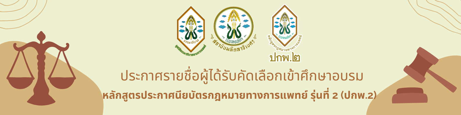 ประกาศรายชื่อผู้ได้รับคัดเลือกเข้าศึกษาอบรมหลักสูตรประกาศนียบัตรกฎหมายการแพทย์ รุ่นที่ 1 (ปกพ.1)
